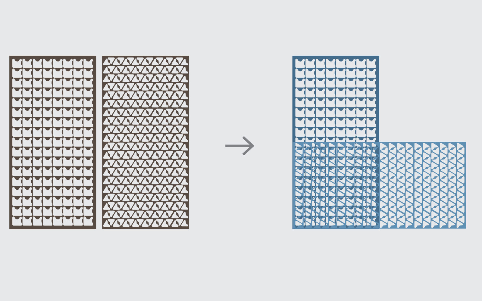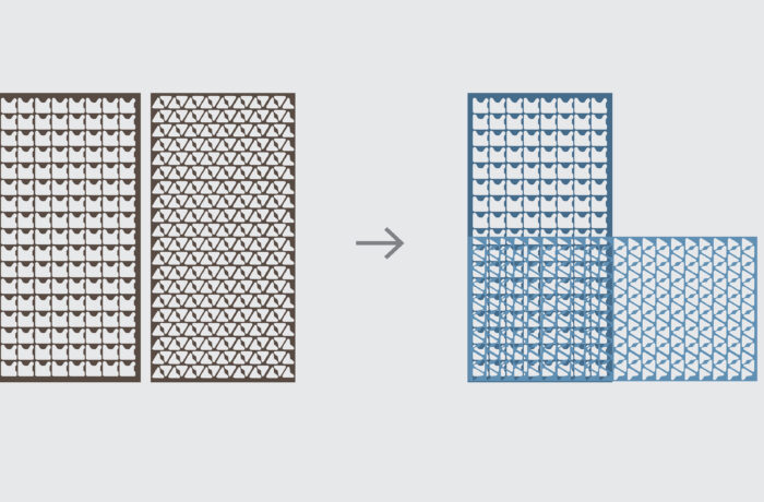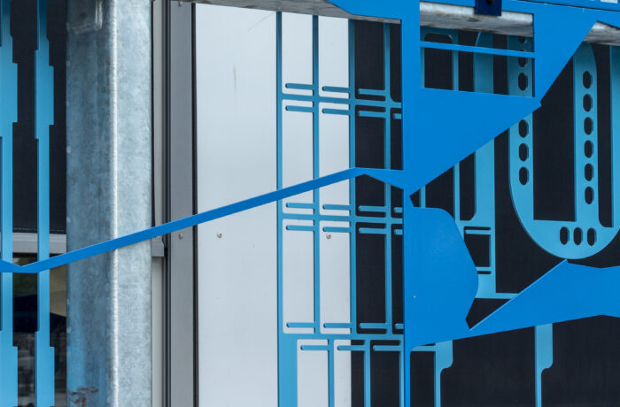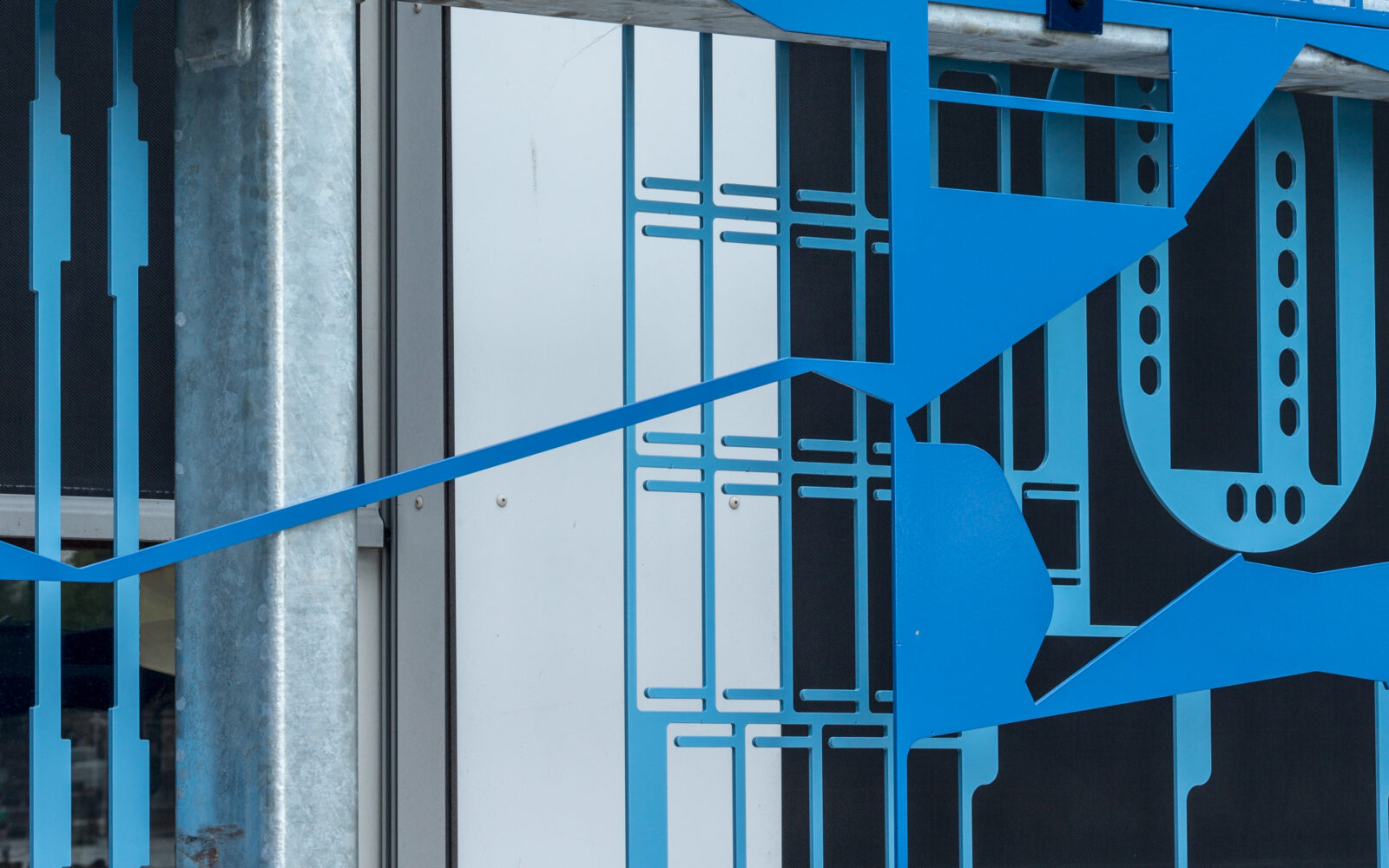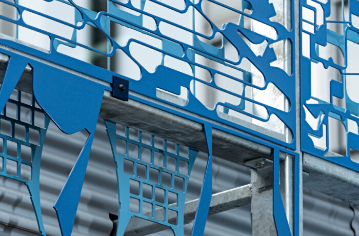We plaatsten de contourplaten in twee lagen achter elkaar. Zo ontstaat diepte, ritme en een levendig lijnenspel. Omdat de patronen vooraf niet vastlagen, bepaalden we de compositie op de bouwplaats tijdens montage.