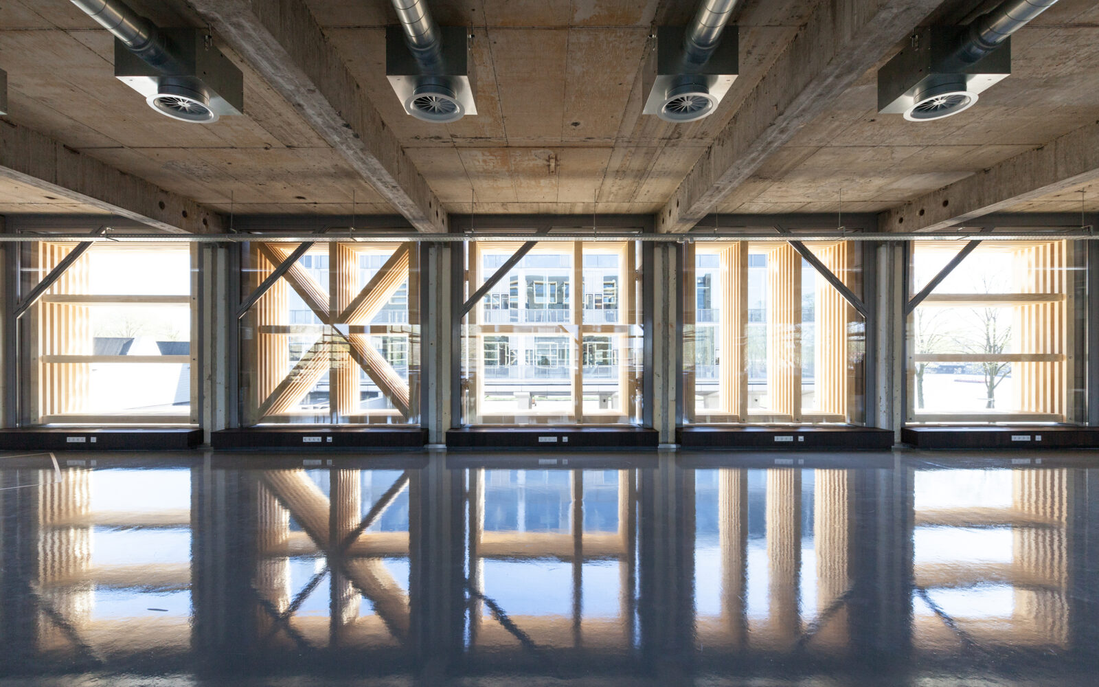 Het Marineterrein in Amsterdam ondervindt geleidelijke transitie van militair complex naar openbaar gebied. Een van de gebouwen op het militair terrein is een voormalig onderwijsgebouw, dat een aantal jaren geleden is ontmanteld en gestript. Voor Bureau Marineterrein Amsterdam is door bureau SLA in 2014 onderzocht hoe het betonnen casco geschikt gemaakt kan worden voor nieuw gebruik, om plaats te bieden aan het Nederlands voorzitterschap van de EU in 2016. Het haalbaarheidsonderzoek is in korte tijd uitgewerkt tot een uitvoeringsgereed ontwerp, dat in 2015 is aanbesteed via het Rijksvastgoedbedrijf. SLA maakte het ontwerp, zorgde voor de technische uitwerking en vervulde de rol van total engineer, met volledige coördinatie van alle adviseurs. Het project is uitgevoerd door aannemer Prins Bouw en werd opgeleverd in 2015.