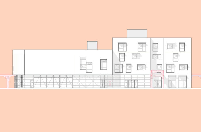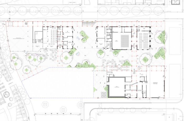 The Cultural Centre Berlijnplein brings together public programming, workplaces and other creative spaces: presentation studios, music, dance and theatre studios, workshops, offices and exhibition spaces. Rather than creating a closed urban block, the design opens the complex to the city. Inside and outside connect directly. This spatial openness encourages creativity, encounter and exchange. The cluster sits on two important urban axes: the cultural route from Stadsbrouwerij De Noot towards De Vrijstaat, and the north-south connection from the station to the surrounding residential neighbourhoods. The area remains accessible day and night.