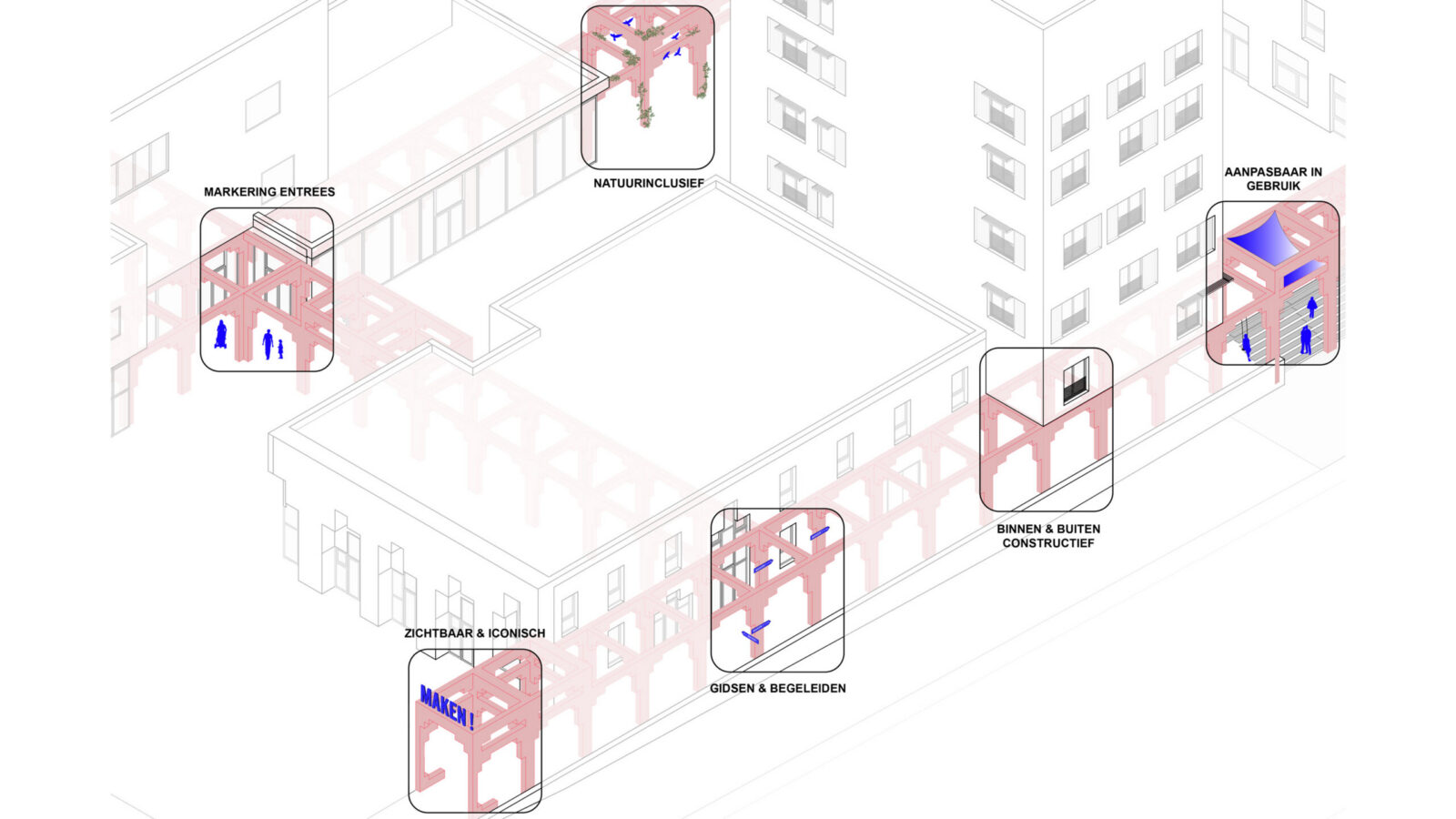 The design emerged from an intensive co-creation process with all Pleingenoten (users). We shaped the preliminary design for the Cultural Centre Berlijnplein step by step through thematic booklets, team sessions and cluster sessions. This process not only improved the design, but also strengthened the connections between the future users.