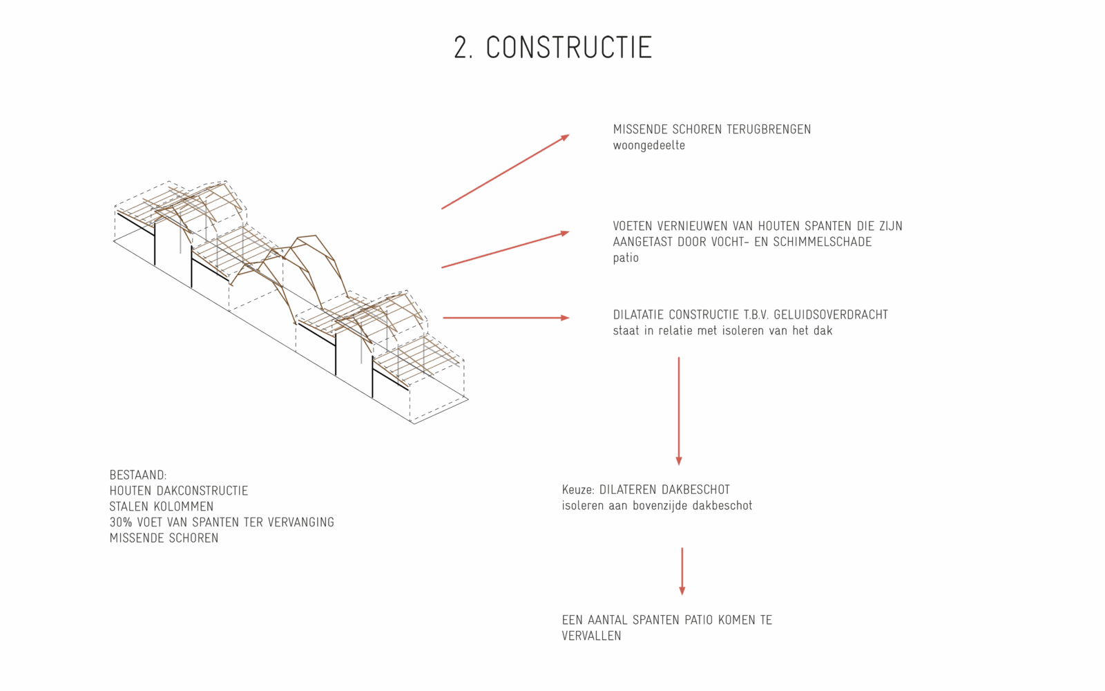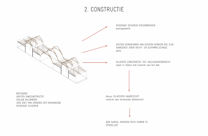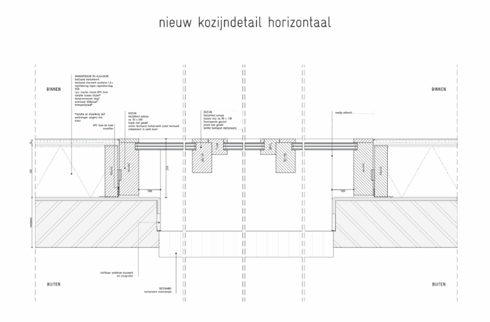 A special transformation is taking place on a monumental enclave of former barracks, workplaces and ammunition storage at the Hembrug terrain in Zaanstad. Initiated by a group of inspiring creatives, the century-old A11 workshop, originally used for weapons repair, is undergoing a conversion into a building that combines residences and workspaces for 8 households. This transformation honours the building’s historical scars, which have accumulated over the past century. In the renovation the preservation of valuable architectural details is prioritised, embracing the scars, such as stepped corners, overhead bars above windows and curbstones beneath. These show the history of the building and its changes trough the years. Only the structurally necessary wil be repaired. Perfection is not the goal, new additions are introduced in a supplementary layer, carefully integrated without overshadowing the existing architectural qualities. The interventions are aimed to maintain the building’s integrity as a whole.