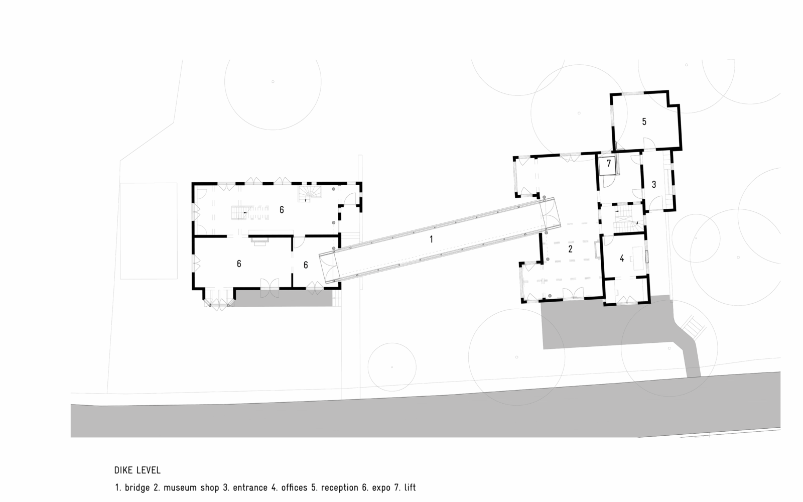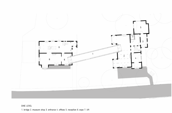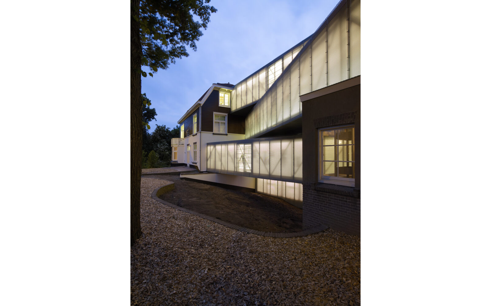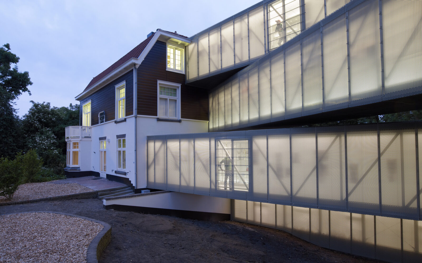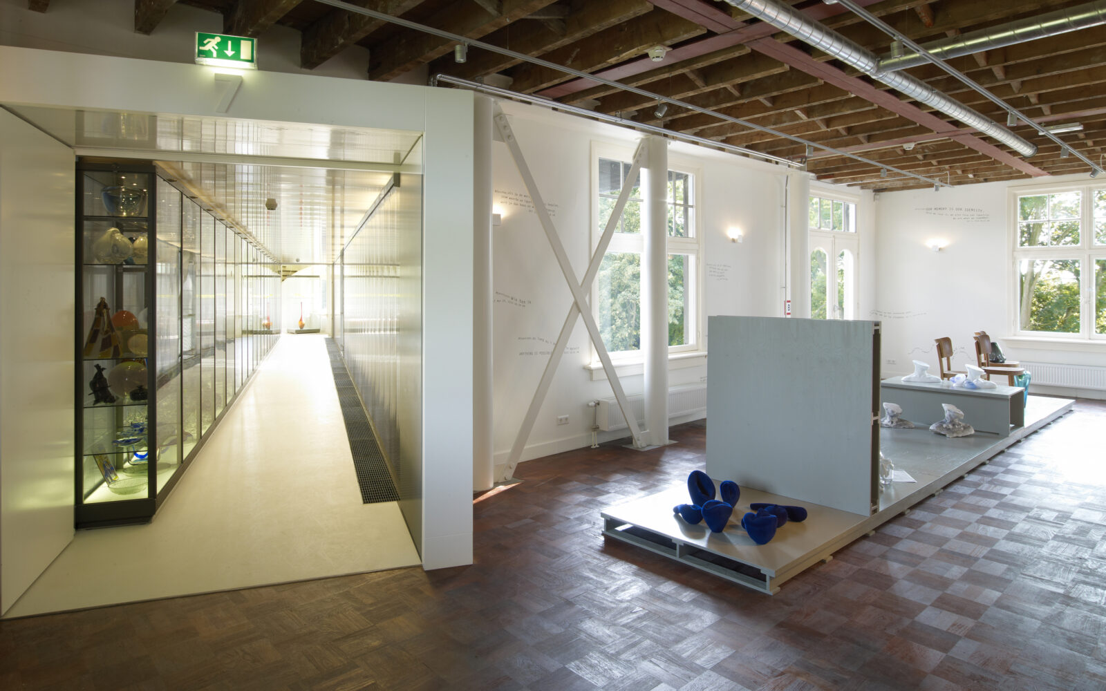 Having two villas is charming, but provides the visitor with nothing else than to walk from one small room to another. By linking the two buildings, continuous exhibition rooms are created. The connection is more than a corridor; it is display space itself and becomes part of the visitor’s experience. Furthermore, the connecting bridges serve as the museum’s storage space. This open storage is fully accessible, making the National Glass Museum the Netherland’s first museum to give public access to its complete collection. You can find more detailed information in this PDF-file.