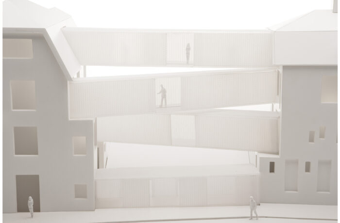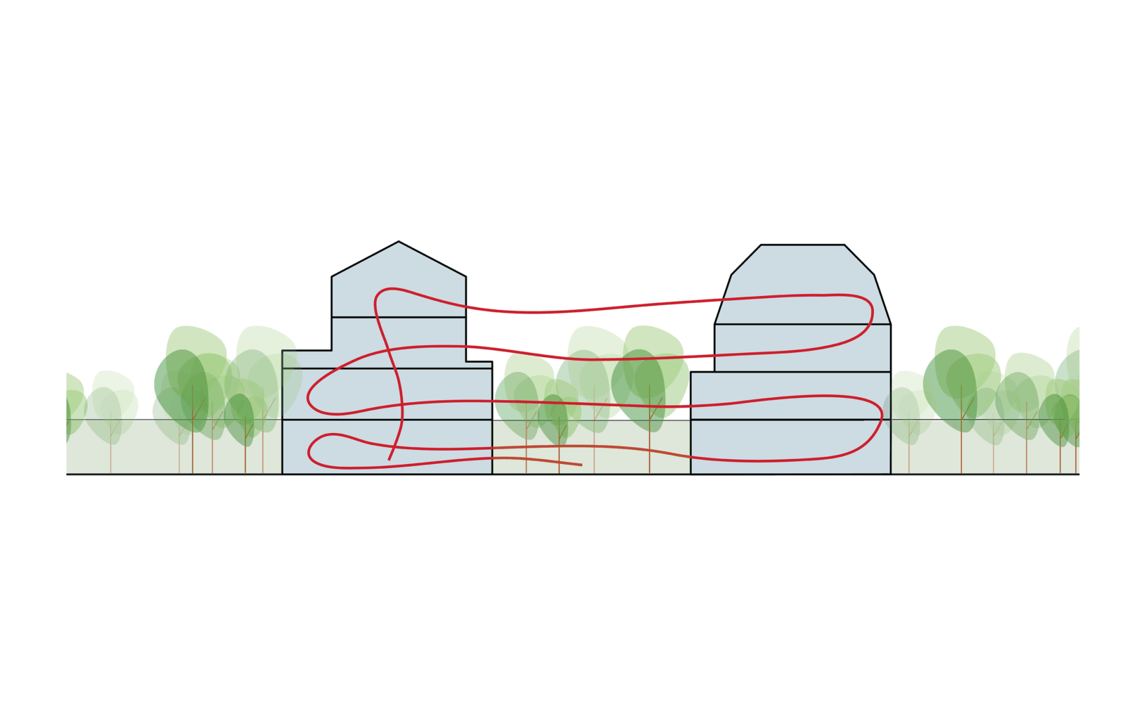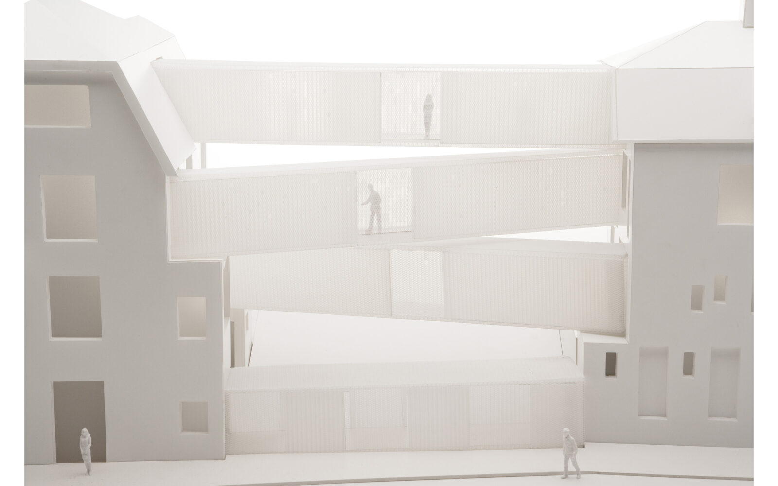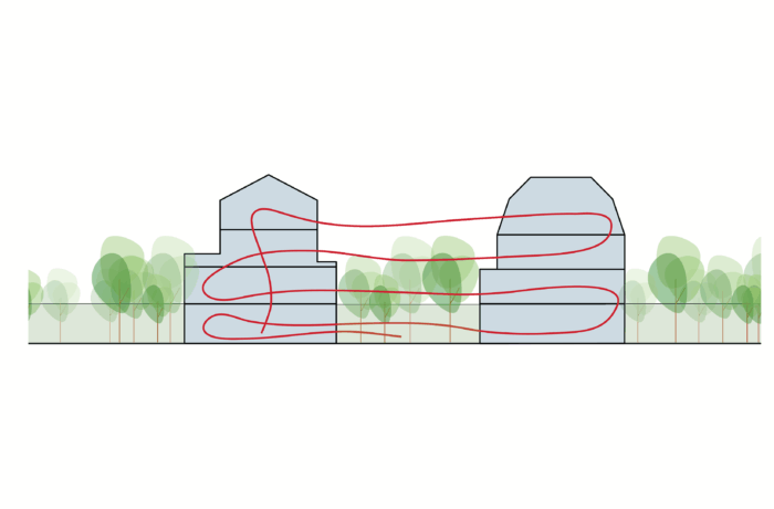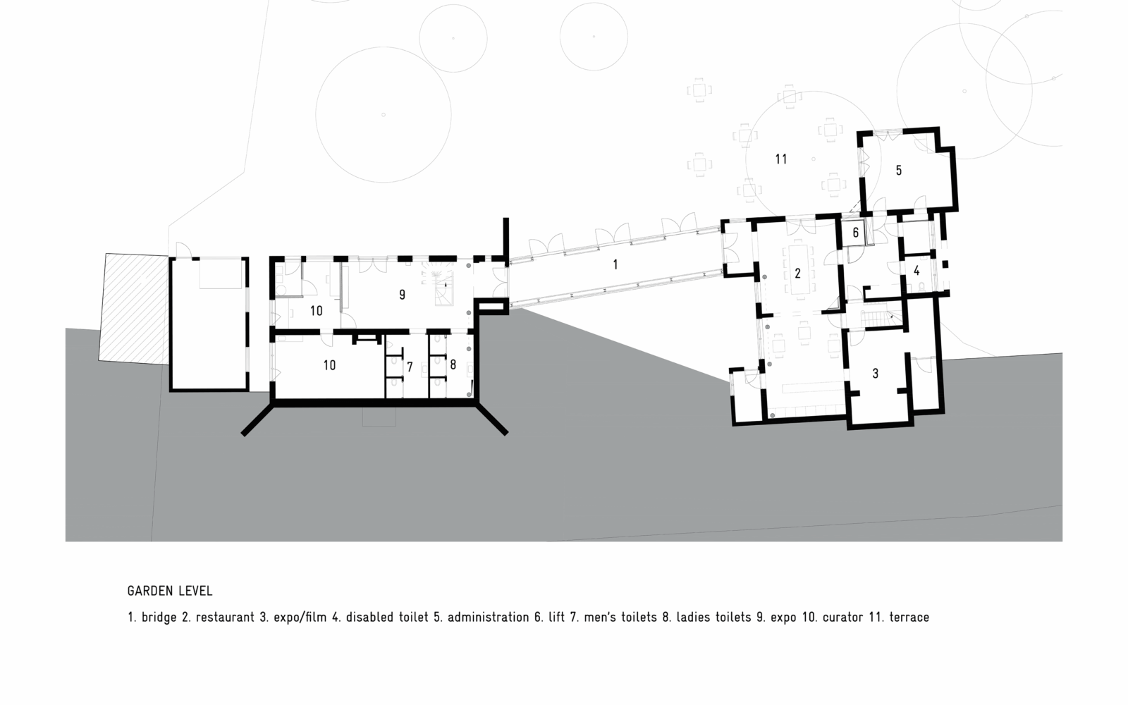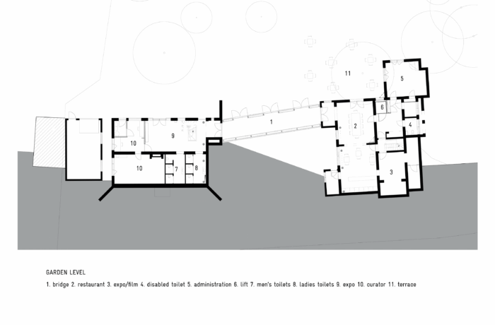 Having two villas is charming, but provides the visitor with nothing else than to walk from one small room to another. By linking the two buildings, continuous exhibition rooms are created. The connection is more than a corridor; it is display space itself and becomes part of the visitor’s experience. Furthermore, the connecting bridges serve as the museum’s storage space. This open storage is fully accessible, making the National Glass Museum the Netherland’s first museum to give public access to its complete collection. You can find more detailed information in this PDF-file.