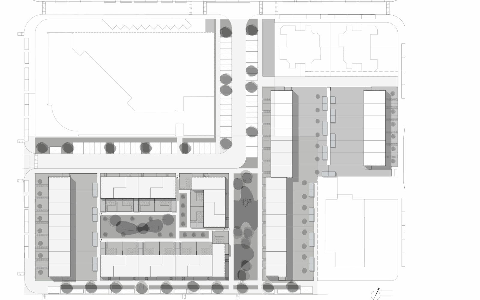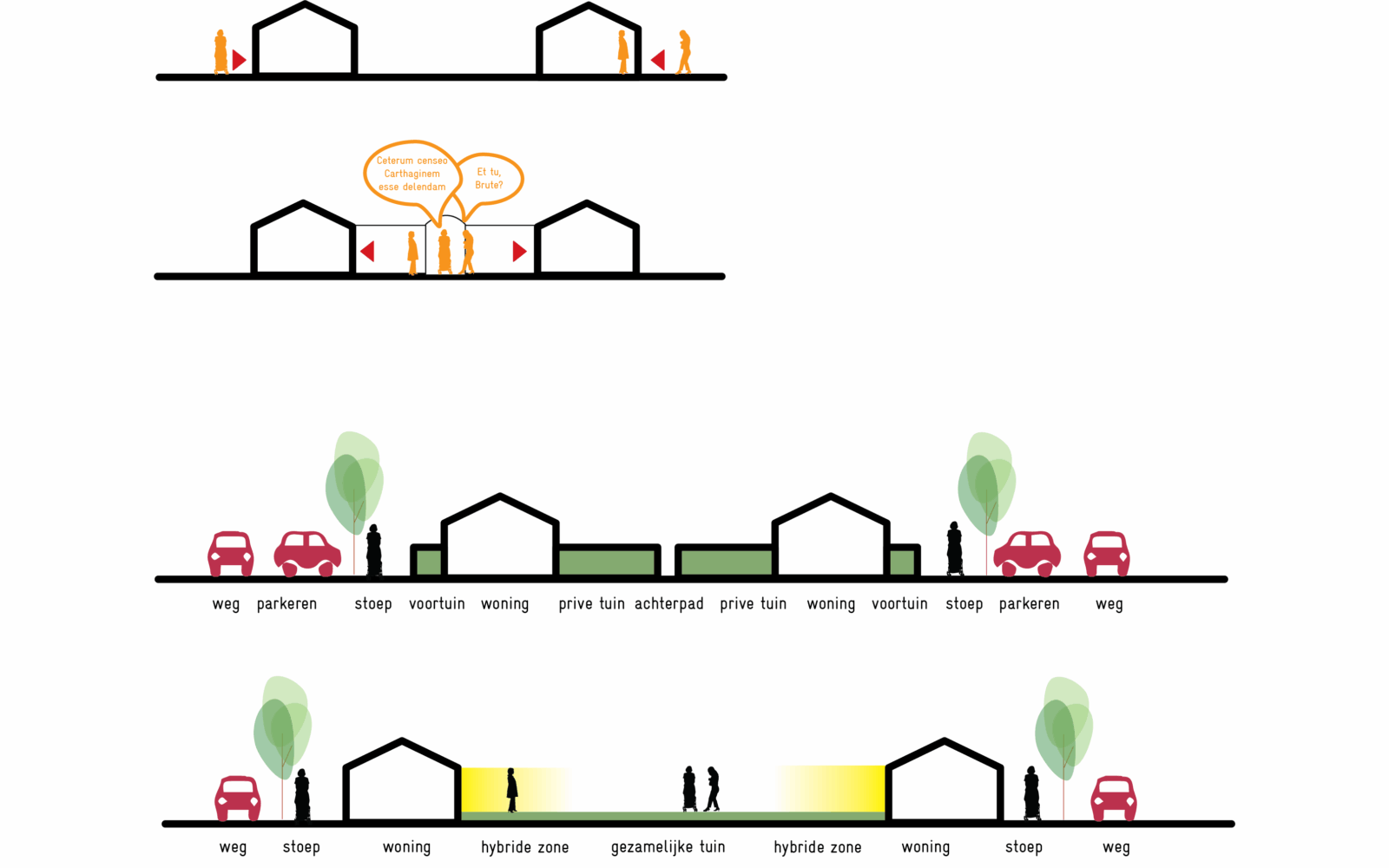 To revitalise the area and at the same time ensure a high quality of life, we have looked into the aspects of this location that play a role in designing a living environment which enables a strong sense of community. The varying scales of the individual fields made it possible to create a living environment where the concepts of neighbourhood, diversity, cohabitation and a sense of community take physical shape in the urban layout. Smart transitions from public to private space and the design of hybrid zones assure the high quality of life we mentioned above.