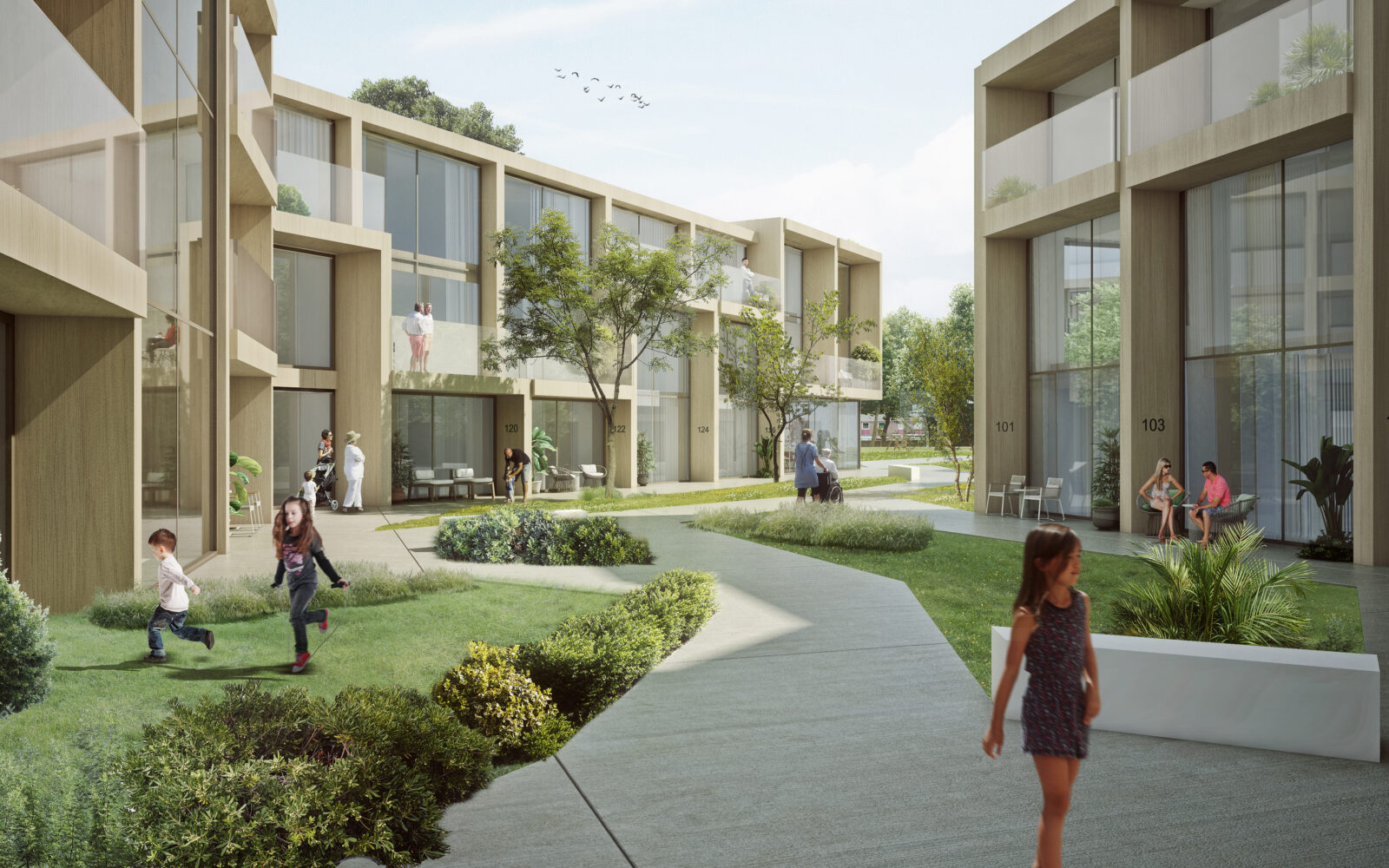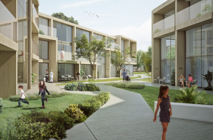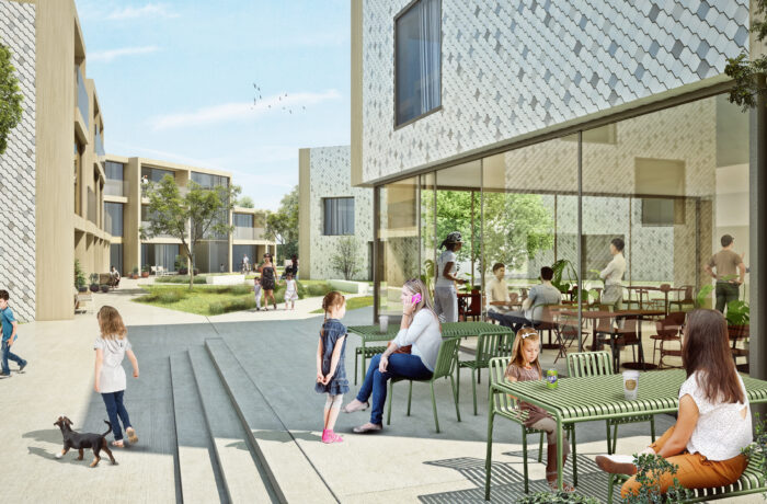 Bureau SLA won the competition for the location in the city of Almere in the port area by combining two existing initiatives: the modern courtyards and the Burenbond. Burenbond is a concept of a neighborhood community circle. Citizens help citizens voluntarily with a question, activity or hobby. The Modern Courtyards study shows that the success of the 400-year-old courtyards typology is based on four principles: the shared gate, the water pump, the regent and the courtyard mother.